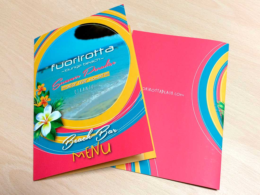 Menu, flyers, cartelli spiaggia, pannelli e totem.